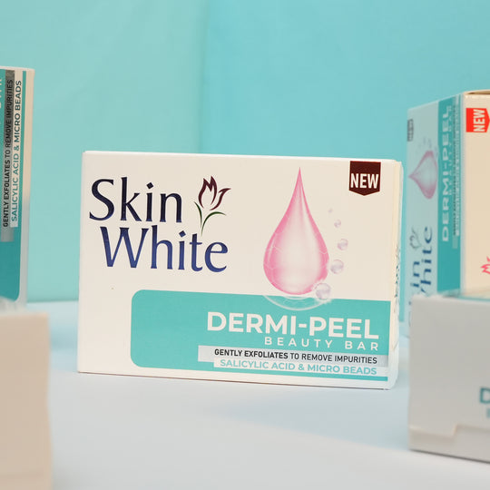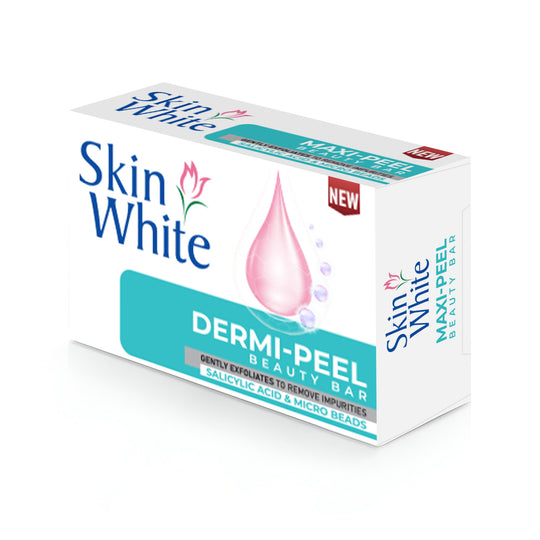 Skin White Dermi Peel Beauty Bar features a powerful skin renewal system with micro-beads that cleanse deep into pores, effectively sweeping away de dead skin cells to reveal smoother, clearer skin. Infused with salicylic acid, a renowned beta hydroxy acid, this soap targets acne by exfoliating the skin and maintaining clear, refined pores-all without over-drying.